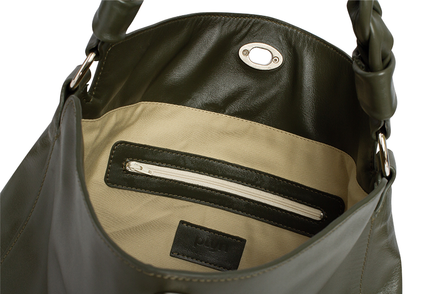 Особливістю цієї моделі є ручка-коса. Плетіння додає сумці оригінальності та витонченості. Колір хакі – це символ стриманості, практичності та зв’язку з природою, який легко поєднується з різними стилями одягу, від кежуал до мілітарі.