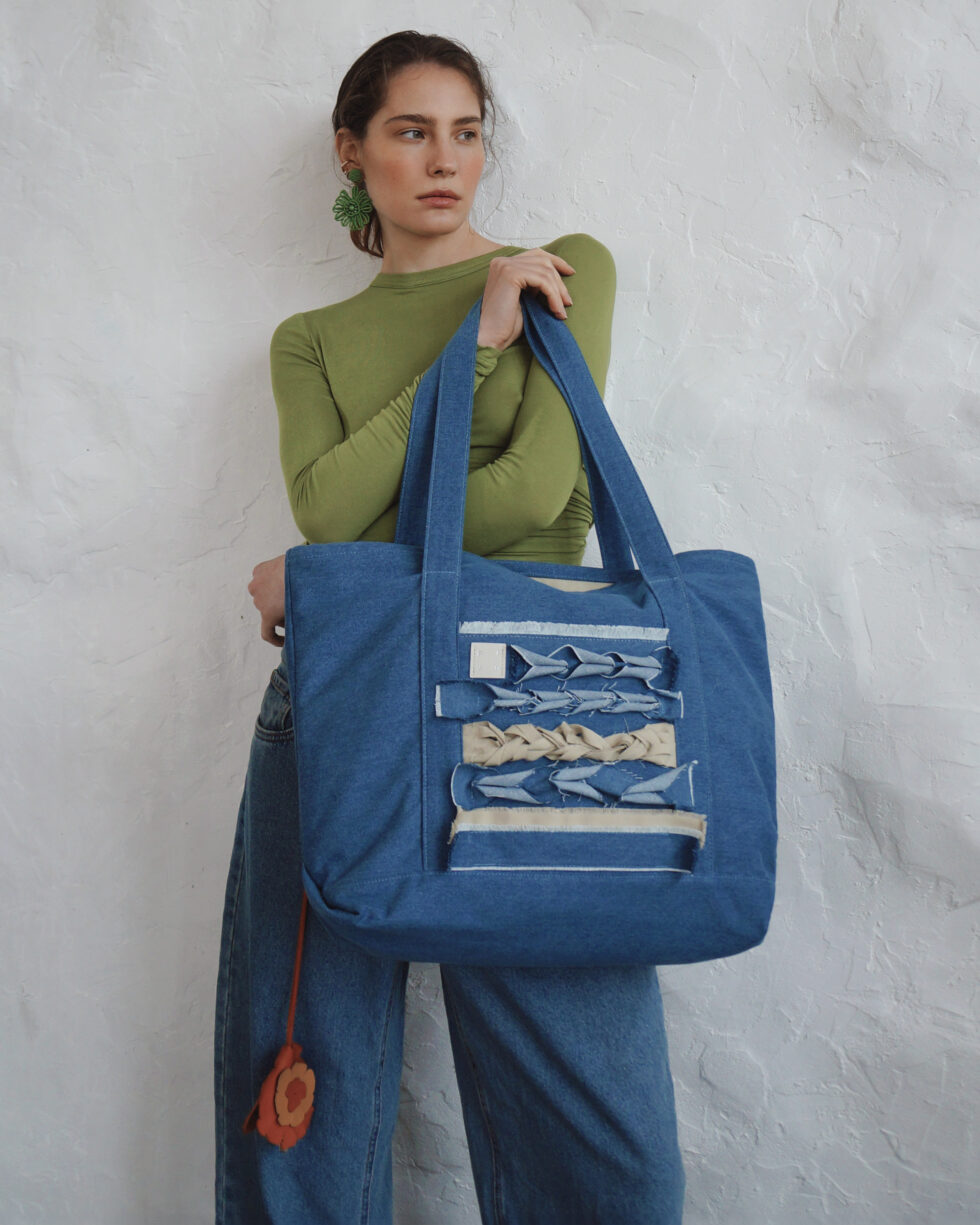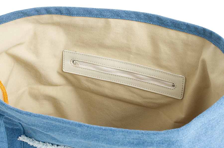 Матеріали – 100% бавовна, джинс. Підклад – 100% бавовна, саржа бежевого кольору. Кольори – блакитний. Розмір – 50*37*18 см.
